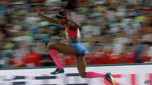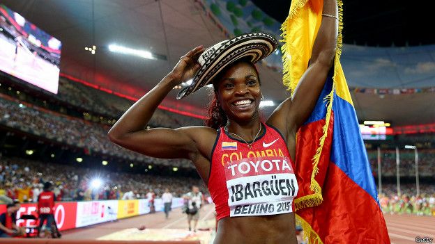 Image copyrightAPImage captionLa colombiana mejoró en cinco centímetros la marca con la que logró la medalla de oro en 2013.