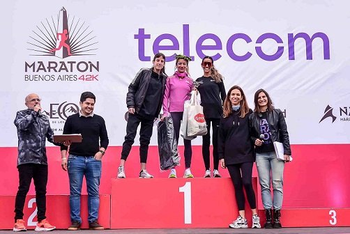 En damas, también las keniatas protagonizaron una fuerte lucha por la punta. Y allí Rodah Jepkorir Tanui -quien ya había triunfado en Buenos Aires en sus presentaciones anteriores de 2019 y 2022- logró su tercera victoria con 2:24:52, tras cerrada lucha con Sharon Jemutai Cherop (ex medallista mundial y ganadora del Boston Marathon), quien llegó ahora a cuatro segundos, en su mejor actuación en tierras argentinas. Pamela Jepkosgei Rotich, quien había liderado junto a ellas hasta casi el kilómetro 30, completó el podio con 2:27:37. Las líderes contaron, como «liebre» con el valioso aporte del fondista puntano Diego Sebastián Balmaceda, quien posteriormente ocupó el 20° puesto en la general de hombres con 2:27:30.