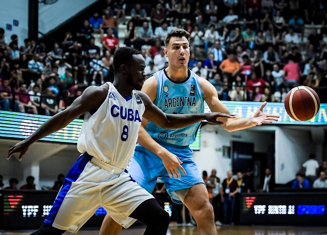 El comienzo no fue bueno para los dueños de casa, que se mostraron imprecisos en los pases y con dificultades para contener la altura de su rival. El ingreso de Juan Fernández y Gabriel Deck fue clave para que los albicelestes defiendan mejor la zona, aunque Cuba descontó y cerró el primer cuarto a cinco (24-29). Sin ejercer un claro dominio sobre el juego, Argentina logró escaparse a 12 en el segundo segmento, apostando al lanzamiento externo de Redivo y Delfino, con Deck y Campazzo como motores del equipo. Si bien la visita consiguió un parcial de 7-0, el local respondió y culminó la primera mitad al frente por 50-41.