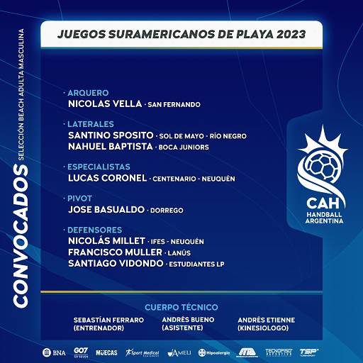 Leticia Brunati y Sebastián Ferraro definieron los ocho jugadores convocados para los 5º Juegos Suramericanos de Playa que se disputarán en Santa Marta, Colombia, en el caso del Beach Handball del 14 al 17 de julio.
