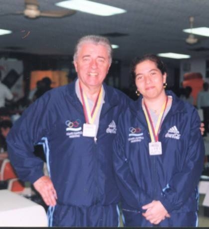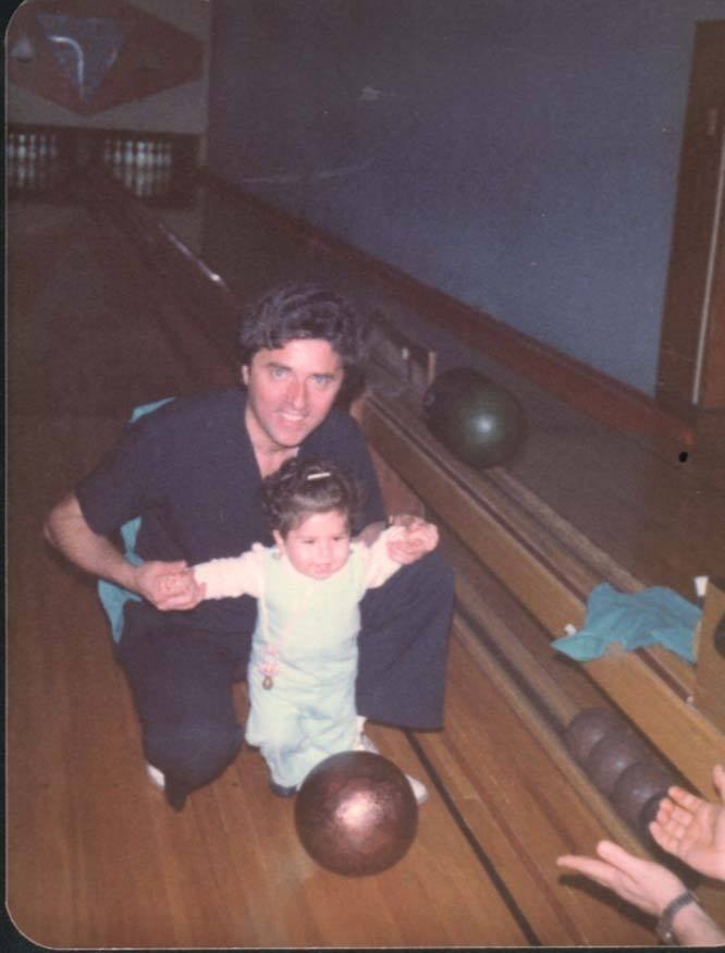 | Mercedes y su papá Jorge, iniciándose desde chiquita en el Bowling |