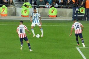 Por la fecha 3 de las Eliminatorias Sudamericanas para la Copa del Mundo 2026, la Selección Argentina le ganó a su similar de Paraguay por 1 a 0 con gol anotado por Nicolás Otamendi en los primeros minutos de partido. Lionel Messi estuvo en el banco de suplentes y entró en el período complementario.