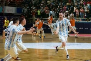 A falta de 4 segundos para finalizar el partido, Matías Edelstein remató fuerte la pelota y anotó el tanto que le dio a La Albiceleste la primera presea dorada en fútbol sala en los Juegos Odesur.