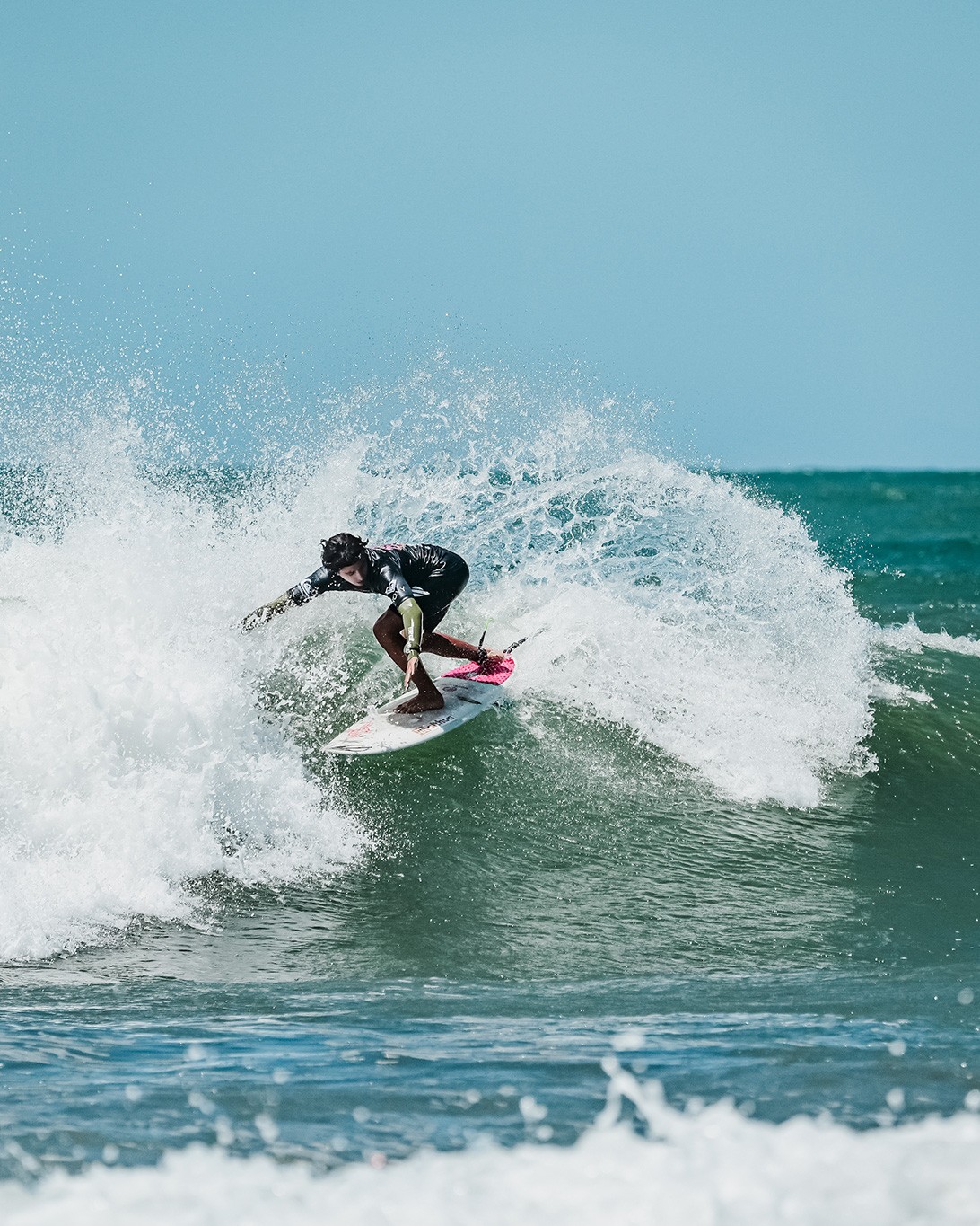 Lo impactante fue que Facundo Ruggiero hizo historia al ganar tres de ellas (M14, M16 y M18) con un surf que combino fluidez, agresividad, técnica y lectura del mar. “Realmente fue muy especial imponerse en la tres, sobre todo por el alto nivel que tiene siempre el Young Guns. La constancia es muy importante en un torneo así y juega mucho lo físico y lo mental. El ir ganando heats me fue ayudando en la confianza, pero realmente terminé destruido. Esto es una gran motivación para seguir en el camino que va trazando mi hermano”, contó Facu haciendo referencia a Juan Cruz, que brilló en Juniors y desde hace tres años lo hace en Open (fue campeón del circuito nacional en 2022 con 20 años y ahora viene de ganar la primera fecha, el RVCA Open Pro).