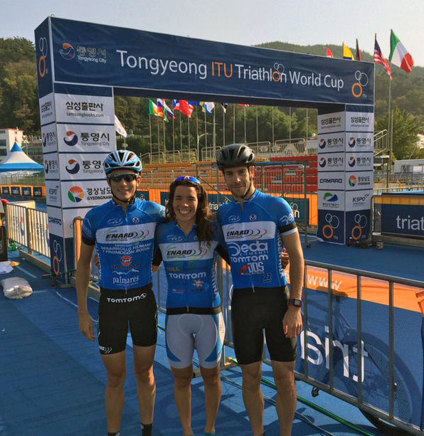 | Gonzalo Tellechea, Romina Palacio Balena y Luciano Taccone en Tongyeong (foto @romipalacio). |