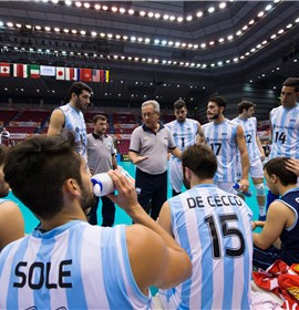 Argentina comenzó su participación en la Copa del Mundo masculina Japón 2015 en el Hamamatsu Arena con una importante victoria sobre Irán por 3 a 1 con parciales 25-27, 25-22, 25-22 y 26-24 en un tiempo de 2 horas y 15 minutos de duración.